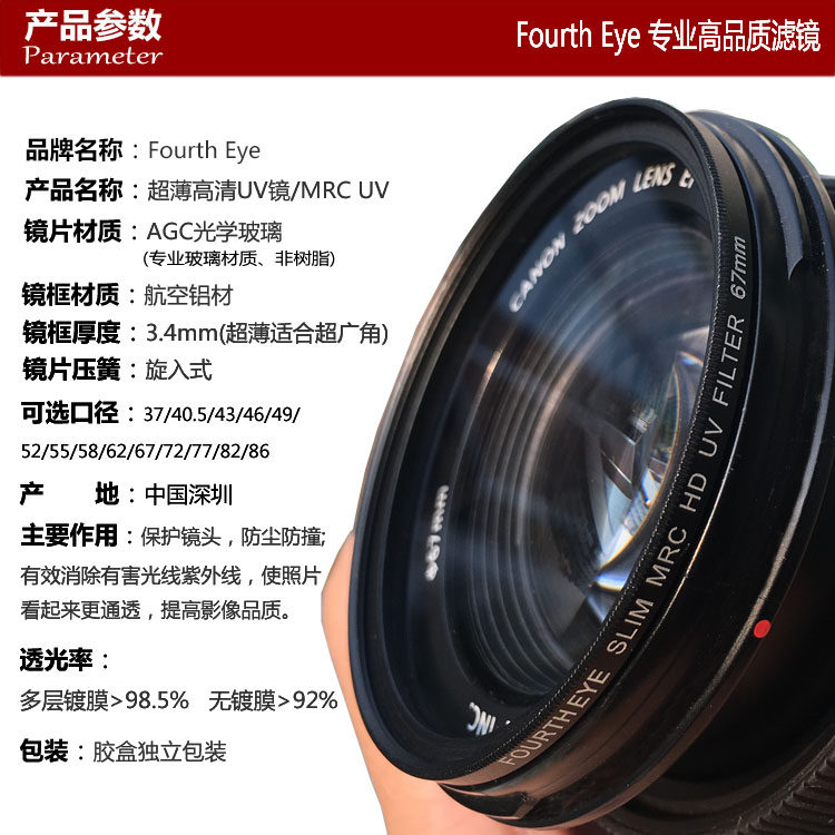 Fourth Eye Ultra-thin HD MCUV Mirror Monocular Filter 49 52 55 58 62 67 72 77 82mm