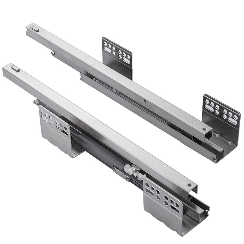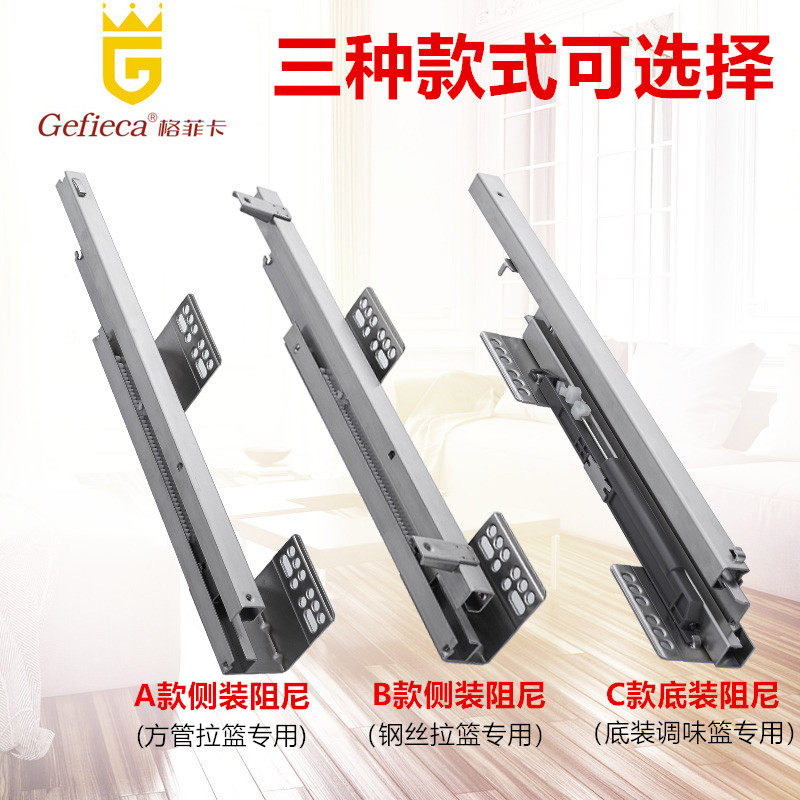 Stainless steel square tube pull basket damping track side mounting bottom slide bottom loading cushioning rail pot bowl basket slide thickened
