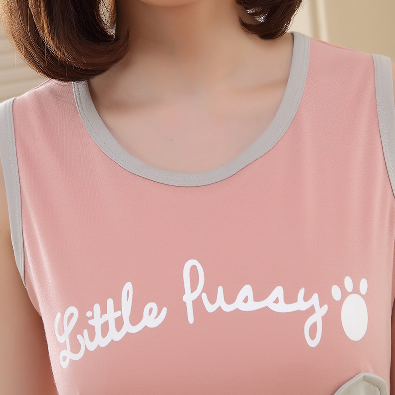 Summer sleeveless cotton couple pajamas men's summer vest shorts cotton Korean women's home service suit summer