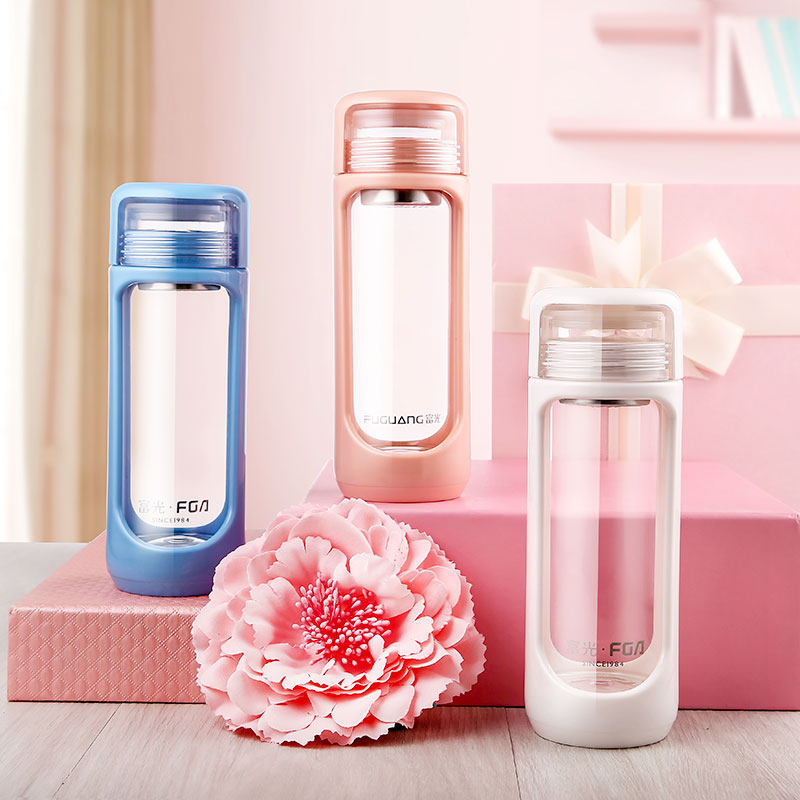 Fuguang water cup glass heat-resistant anti-fall creative flower tea cup filter portable single-layer household men's and women's cups