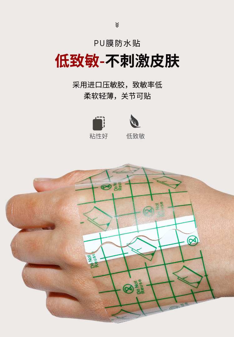 500 pieces of 10*12 waterproof pu film transdermal patch fixed three-volt patch plaster cloth transparent tape can be bathed
