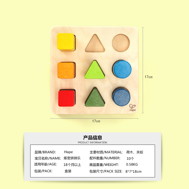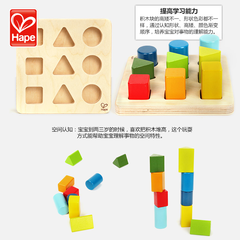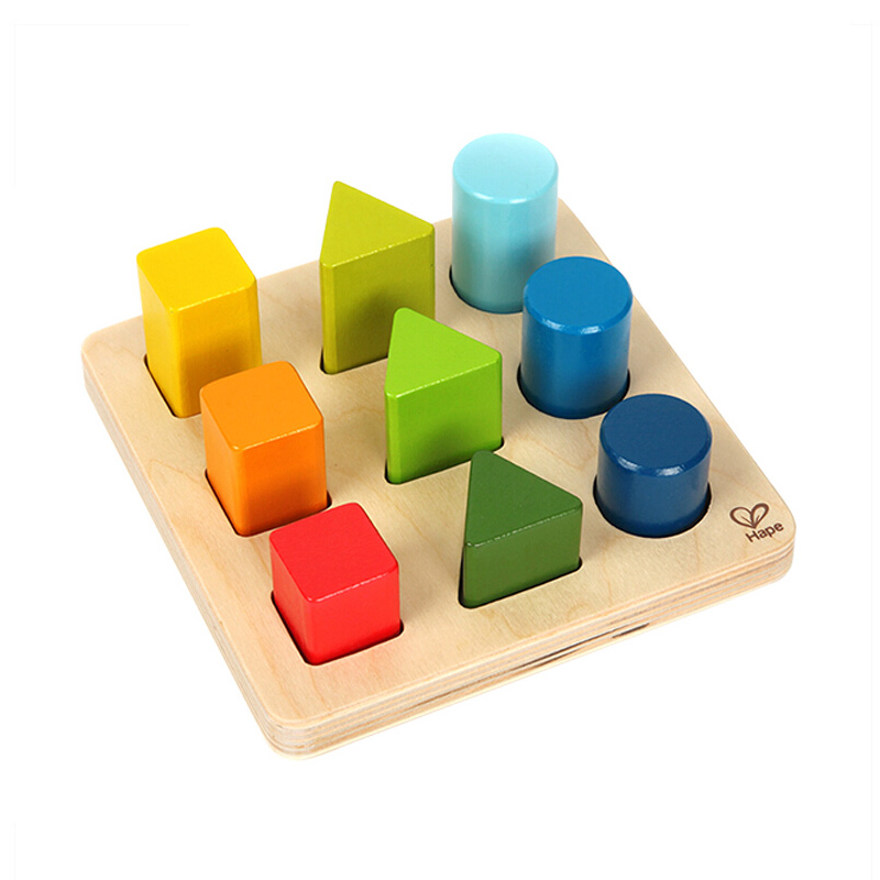 Hape geometry jiggle shape matching wood building block color cognition 1 a 2 year old baby early education educational toy
