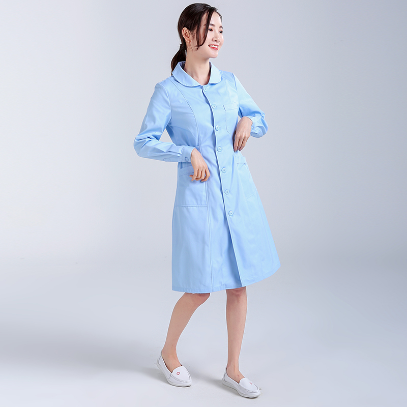 Nurse clothing long-sleeved women's spring and summer gown doctor clothing white blue pink doll collar medical work clothes for many occasions