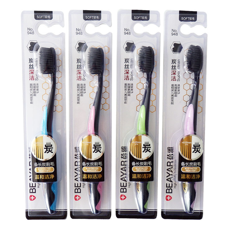 Preparation of long charcoal toothbrush grinding tip silk soft wool toothbrush with high density fine wool antibacterial toothbrush adult bamboo charcoal toothbrush 4 branches
