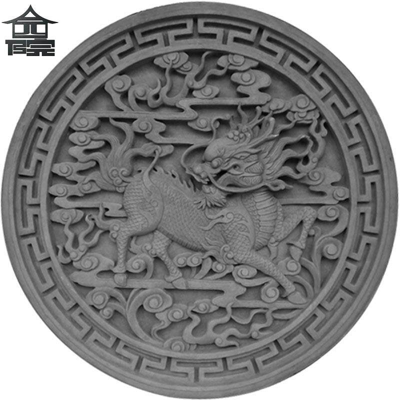 Old brick carved round antique picture wall relief background wall green wall brick 77cm Kirin DH131 shadow wall-mounted wall core
