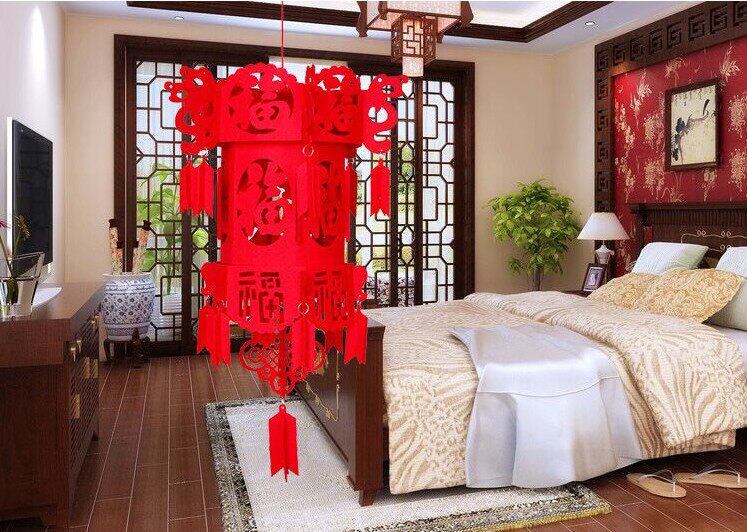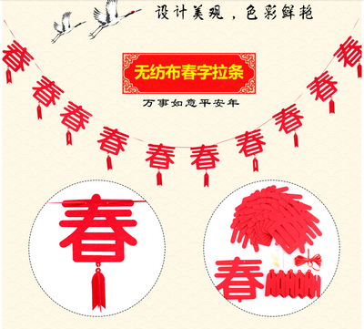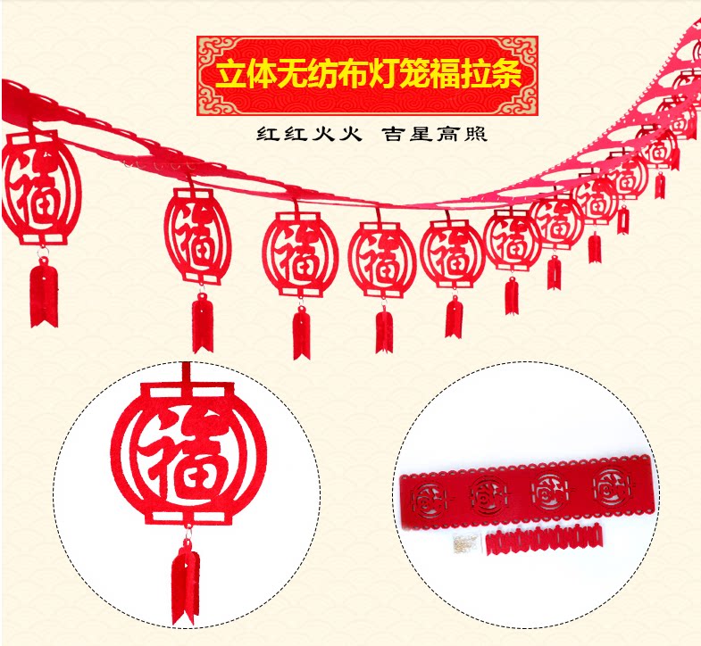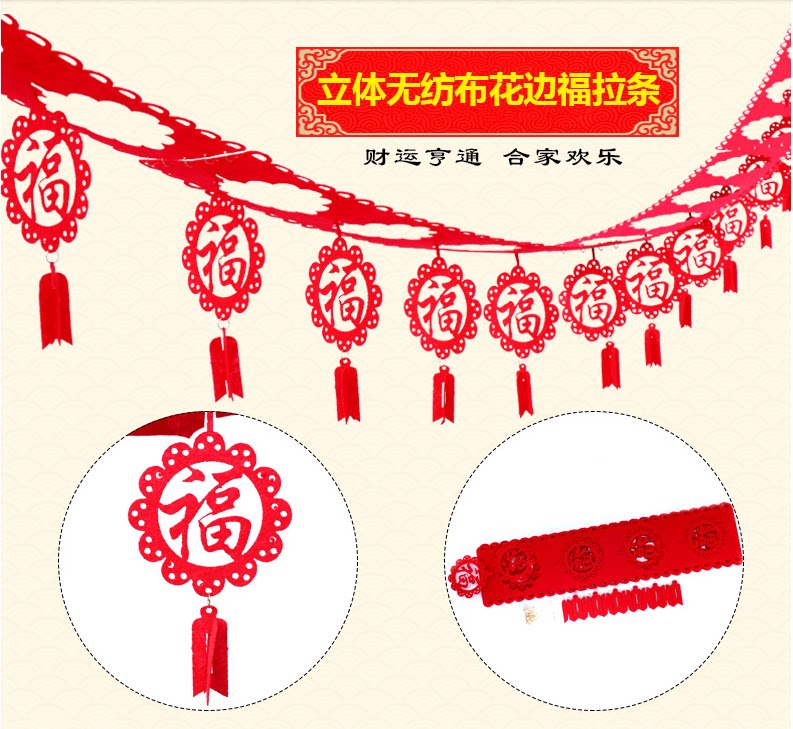 Mid-Autumn Festival National Day non-woven cloth pull flower big red La Fula happy spring character Fu character pull flower strip festive decoration supplies