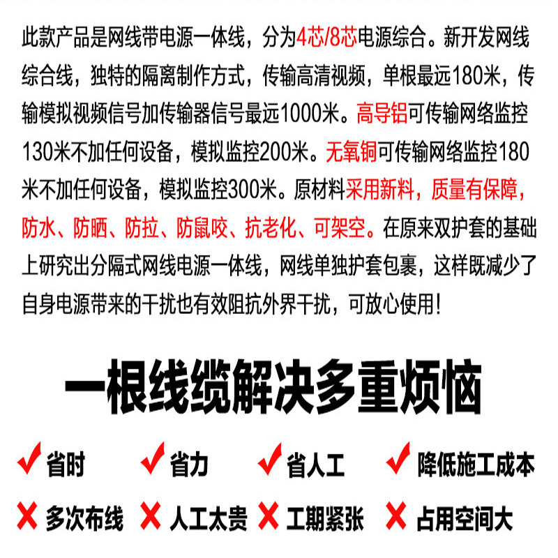 Factory standard 4-core network cable 0.5 Power cord National standard 4-core network cable 0.5 Power cord 8-core network cable 0.5 Power cord 8-core network cable 1.0 Power cord