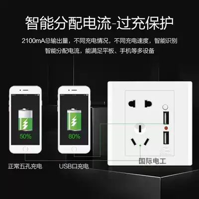 International electrical power wall switch socket panel porous dual charging 86 type household concealed 5 five-hole with usb