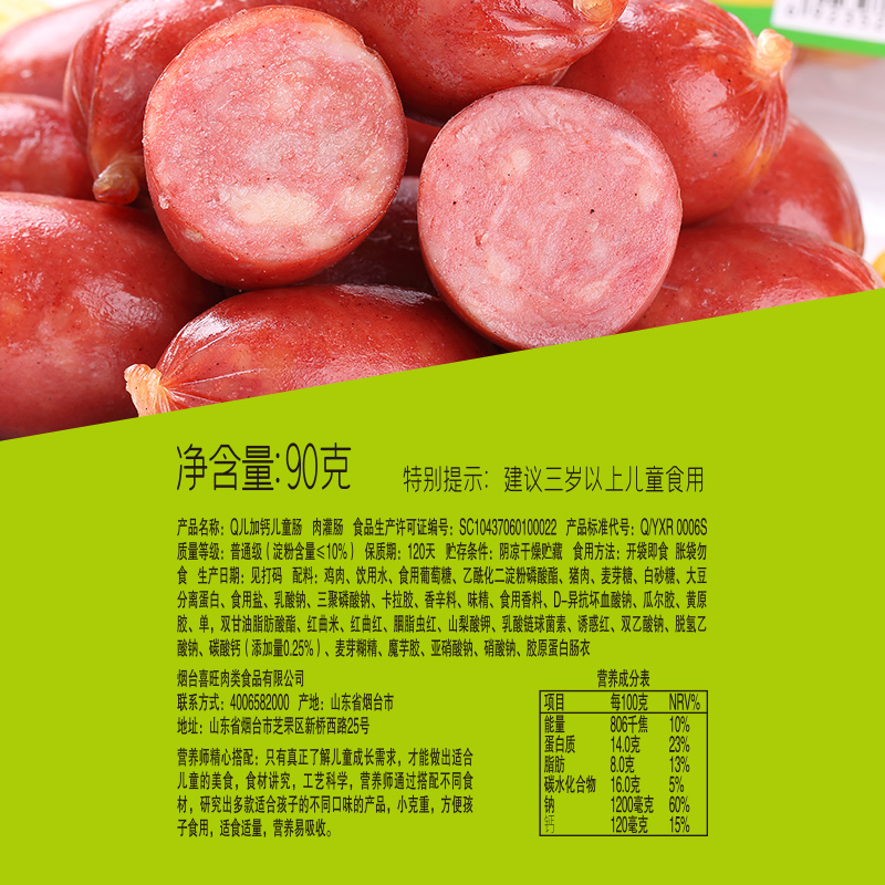 Joywan Q Pediga Calcium Children Intestines 90g * 10 Bags Pork Sausage Fire Leg Sausage Grilled Sausage Ready-to-eat Snacks Small Sausage Food