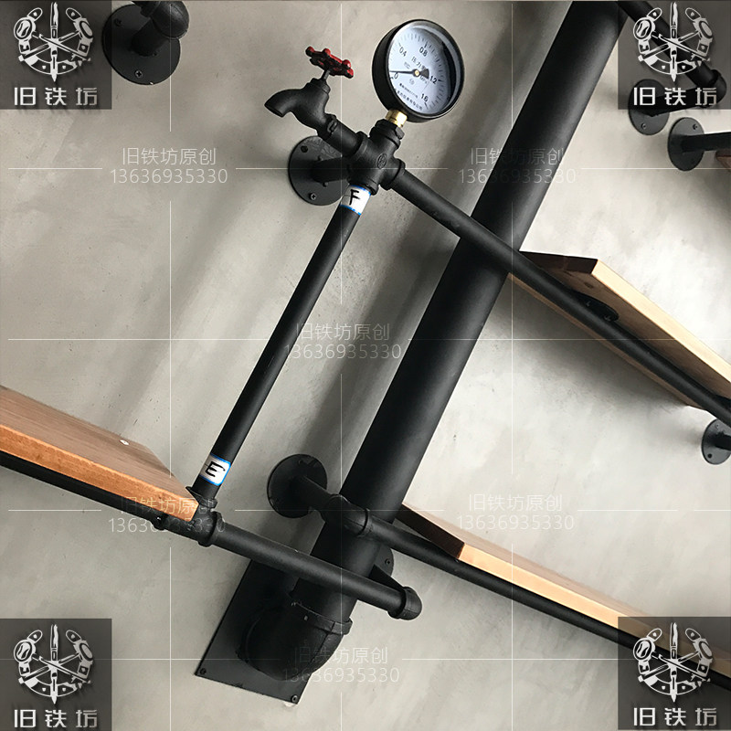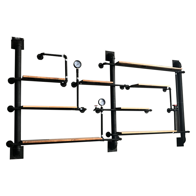 Wrought iron water pipe wall shelf Wine rack Creative wall decoration Retro bookshelf Industrial wind partition wall hanging shelf