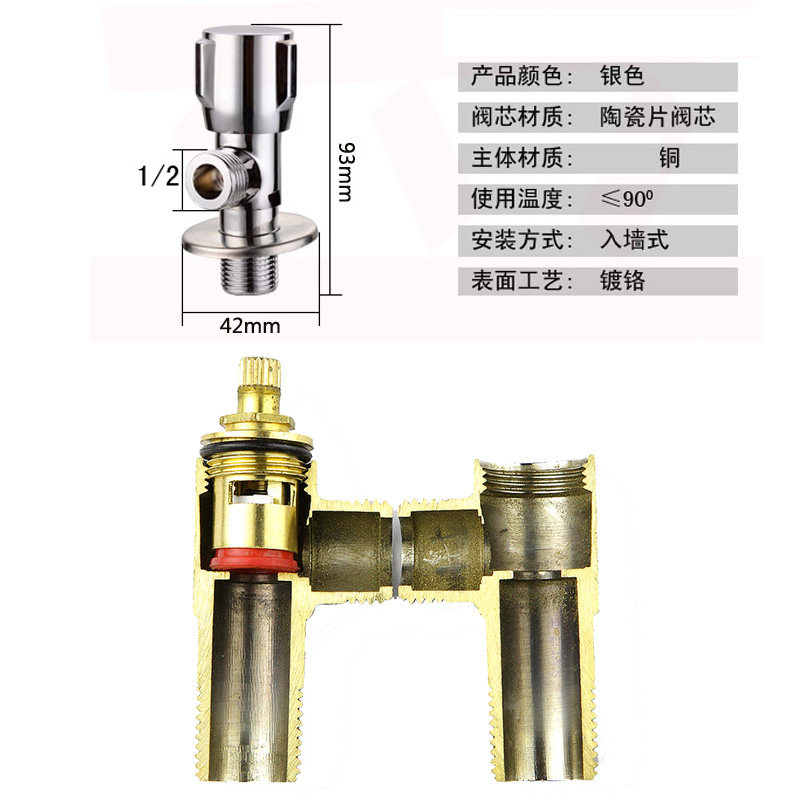 Hot and cold full copper thickened triangular valve water valve brass water stop valve water heater angle valve eight-word valve