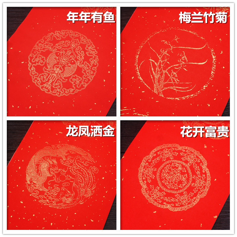 Perpetual Red Xuan Paper Four Feet 6 Feet Thickened Large Red Half Raw And Half Cooked Sprinkle Gold Brush Calligraphy Practice Writing
