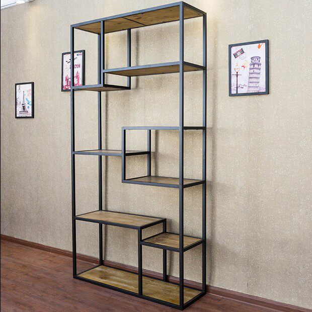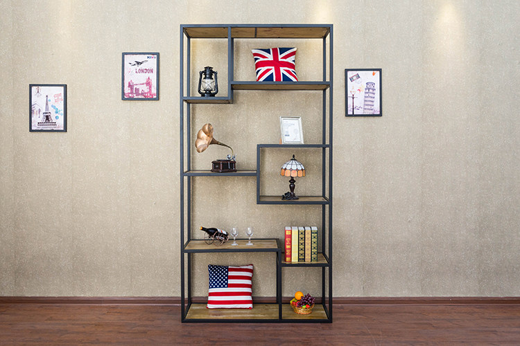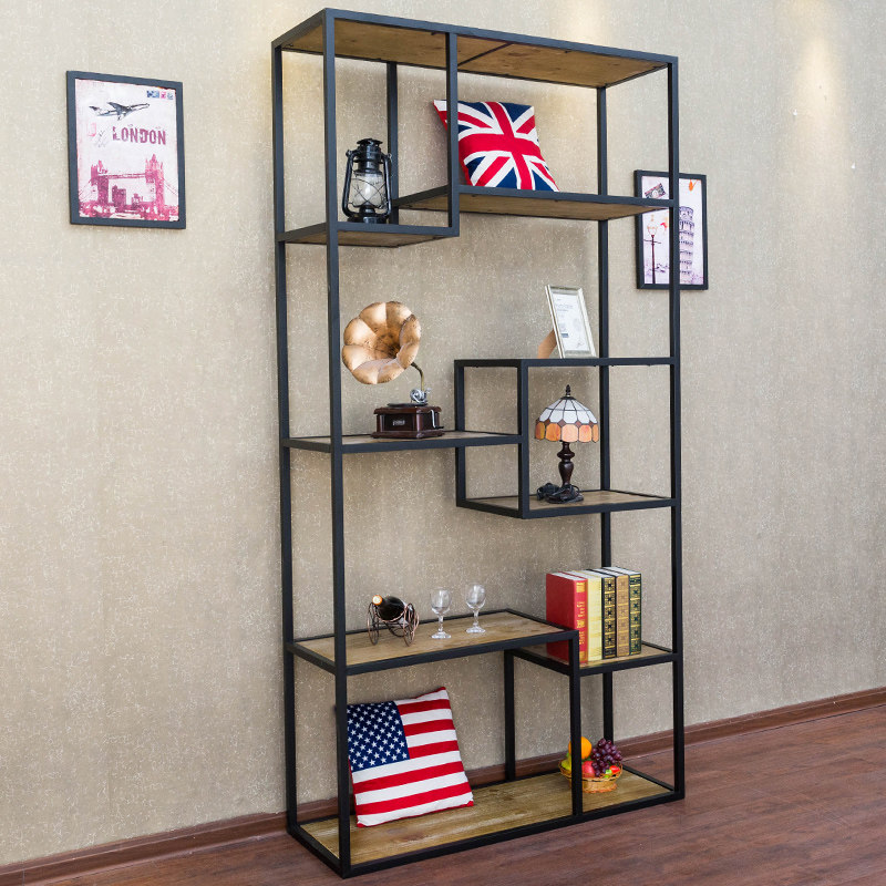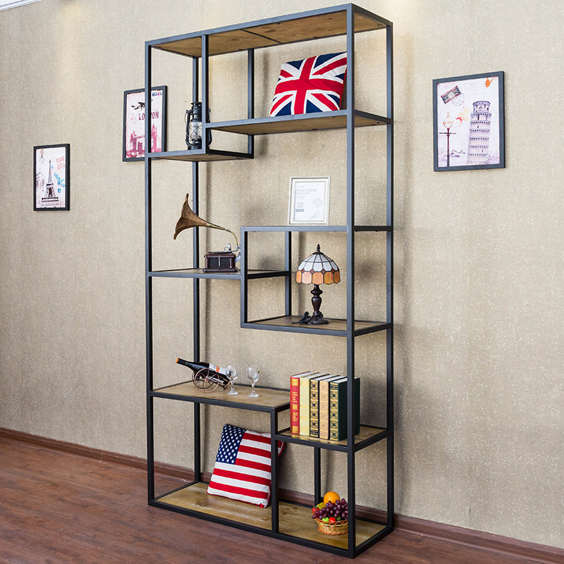 American retro wrought iron solid wood rack creative bookshelf kitchen multi-layer rack storage rack floor display stand custom