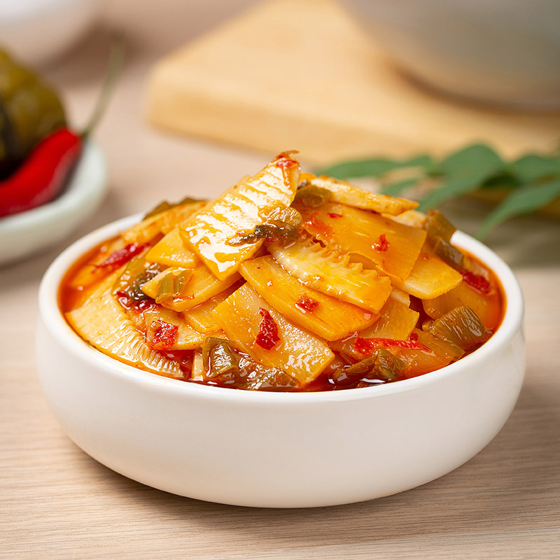 Bamboo shoots, edible vegetable oil, peppers, mustard greens, ginger, garlic, edible salt, spices, white sugar yeast extract, food additives (sodium glutamate, 5-flavor nucleotide disodium, potassium sorbate)