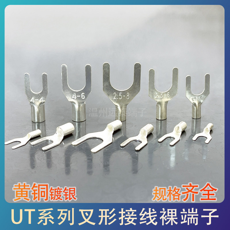 UT2 5-4 cold-pressed terminal block U-shaped Y-shaped fork-shaped bare terminal copper wire nose silver-plated terminal lug 1000 pieces