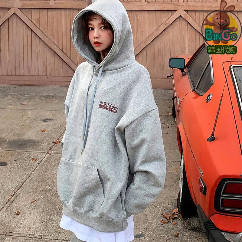 19 autumn and winter New Korean version Leisure letter Lianhood training loose sleeves hooded sweatpants thick cotton T women