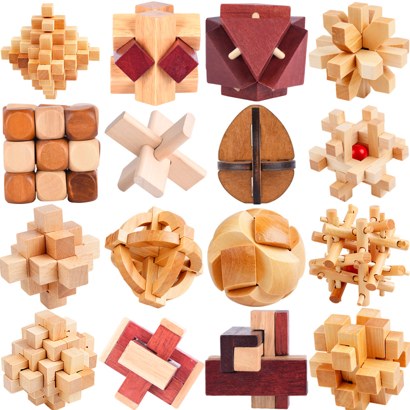 Ginny Rabbit Adult Educational Intelligence Children's Toy Kongming Lock Set Unlock Free Illustrated Sixteen-Piece Luban Lock