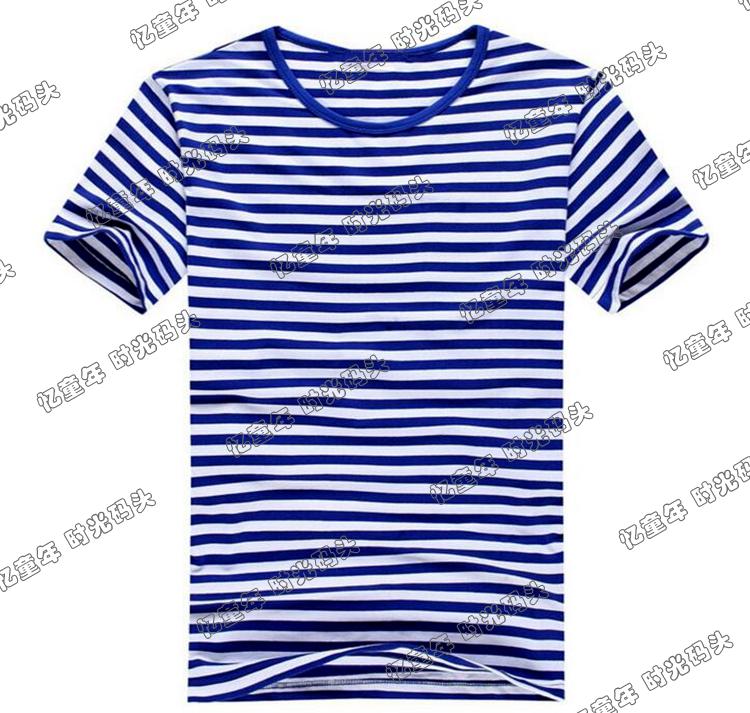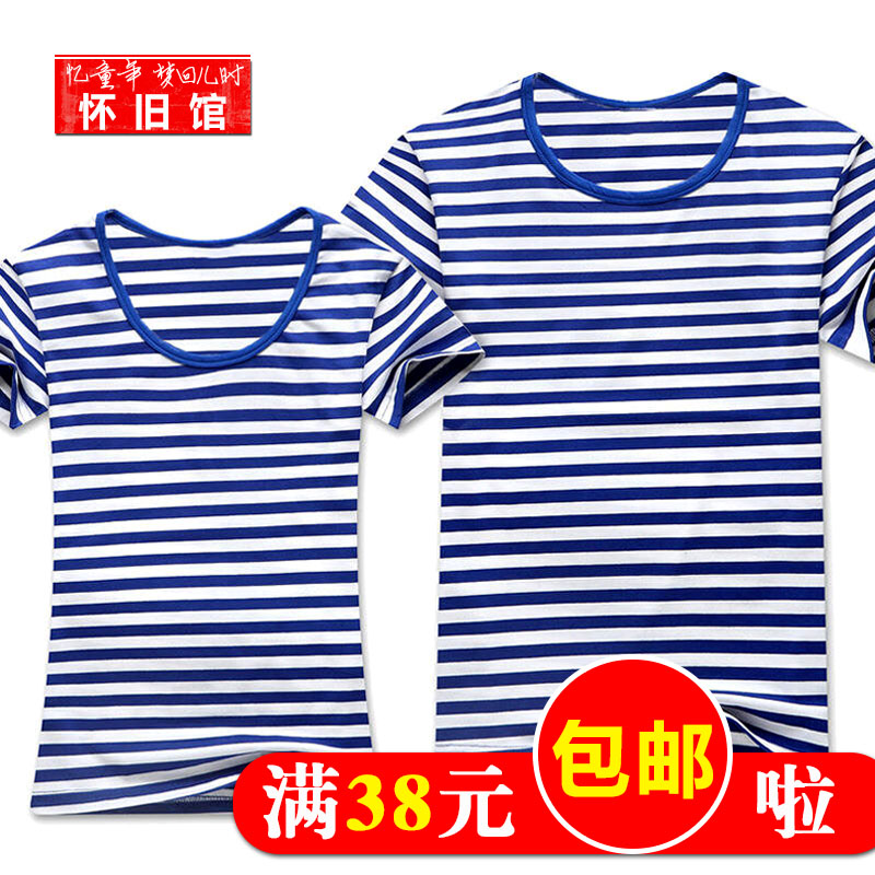 Reminiscence childhood after the 80s childhood nostalgia Sea Soul shirt blue striped men's couples wear party ladies short-sleeved T-shirt