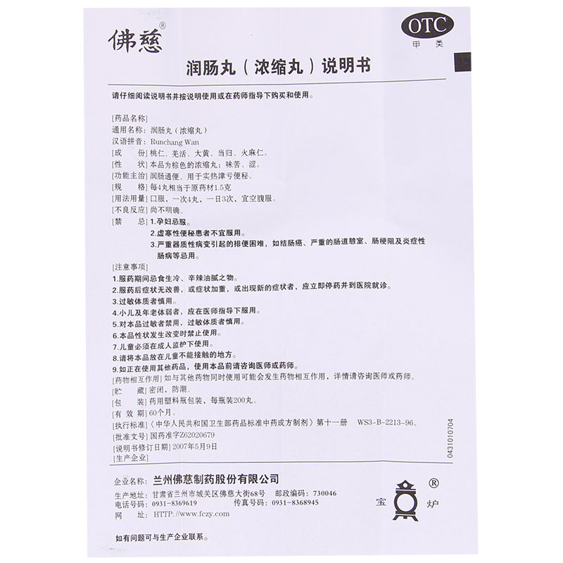 (As low as 11 yuan) Foci Runchang Pills Concentrated Pills 200 Pills for Constipation Medicine Runchang Laxative