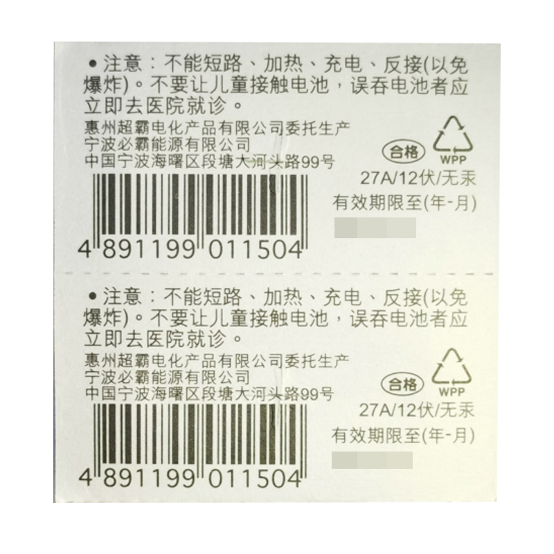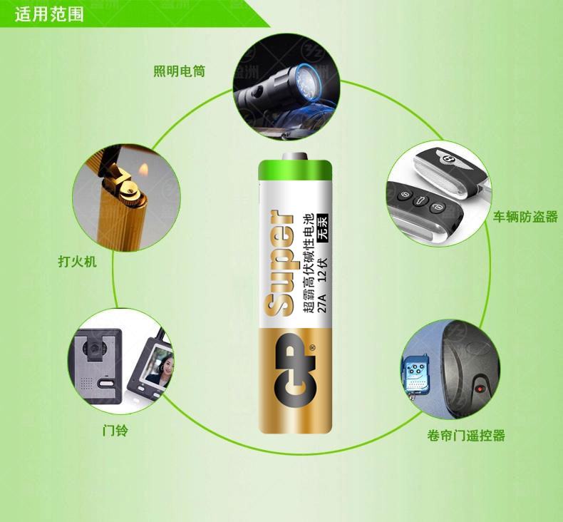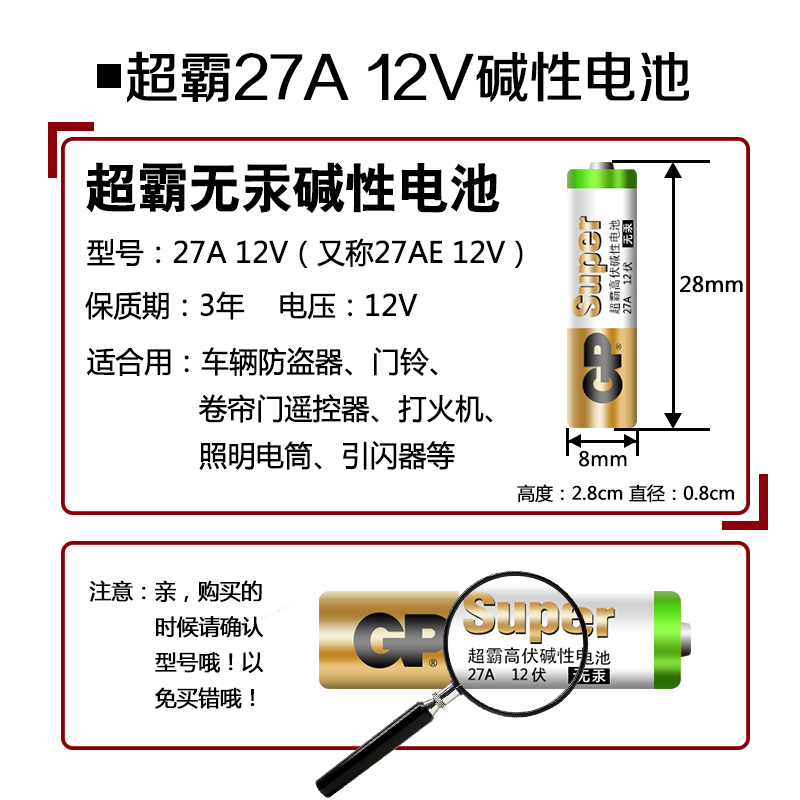 GP hyperbaric 27A 12V27A volt Super dry battery small electric roller shutter door curtain electric fan point Read pen lighter remote control High-volt alkaline Eugener cool bully clothes hanger home