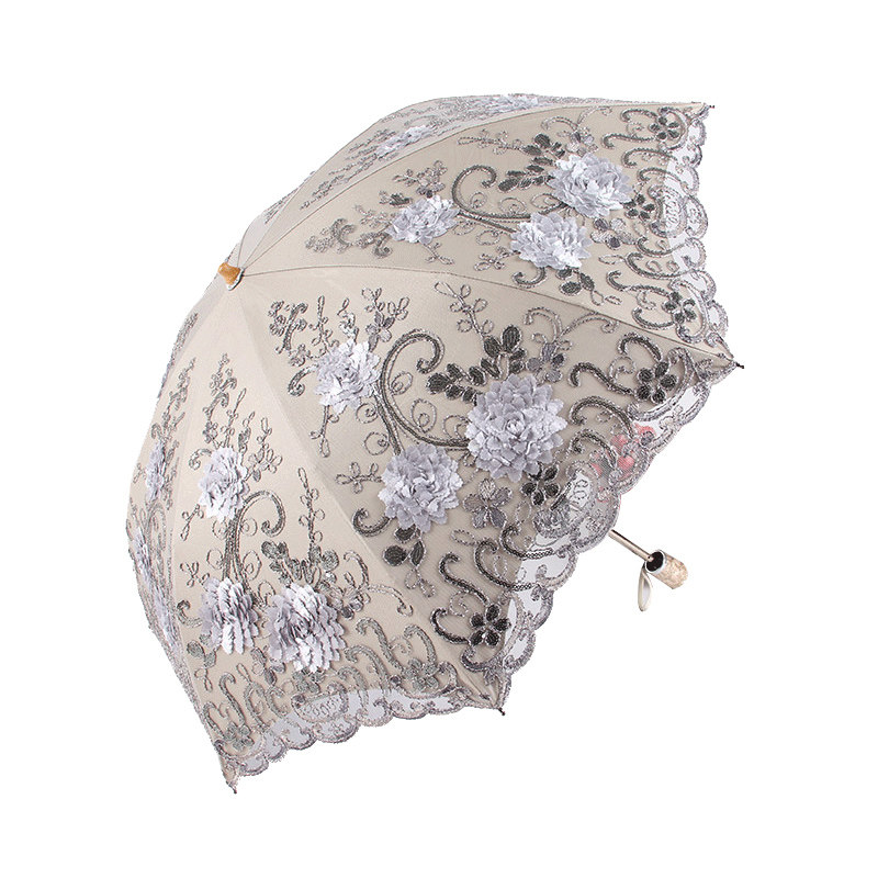 Goddess beach umbrella sunscreen anti-UV embroidery lace black rubber beach umbrella portable folding princess umbrella clear umbrella
