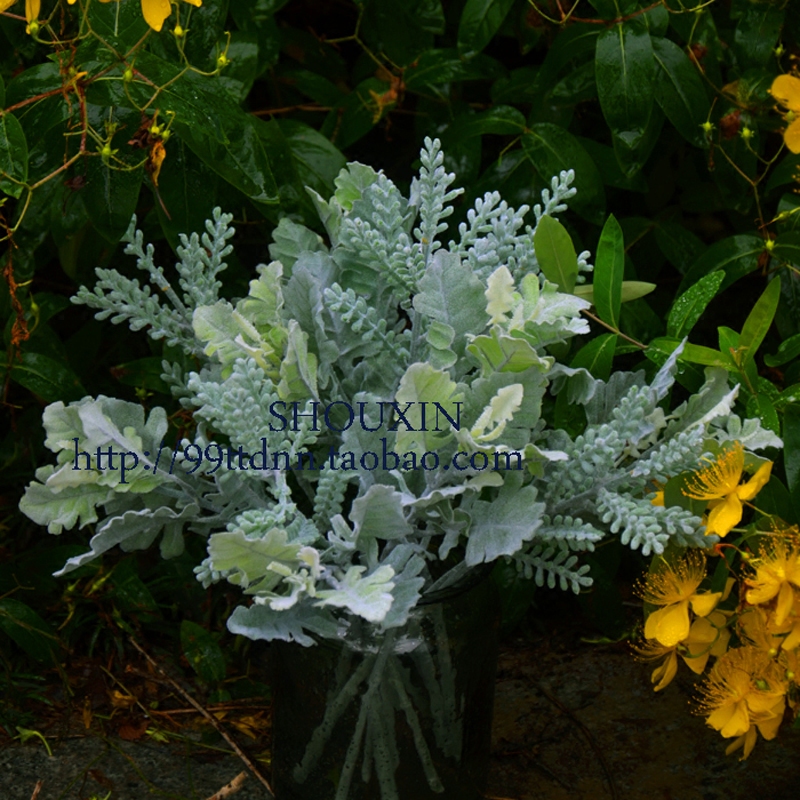 Upscale green plant silver leaf Chrysanthemum Antlers Leaf Small Goat Horns Leaf Emulation Flowers Fake Flowers Living-room Bedroom Tea Table Placement Decoration Flowers