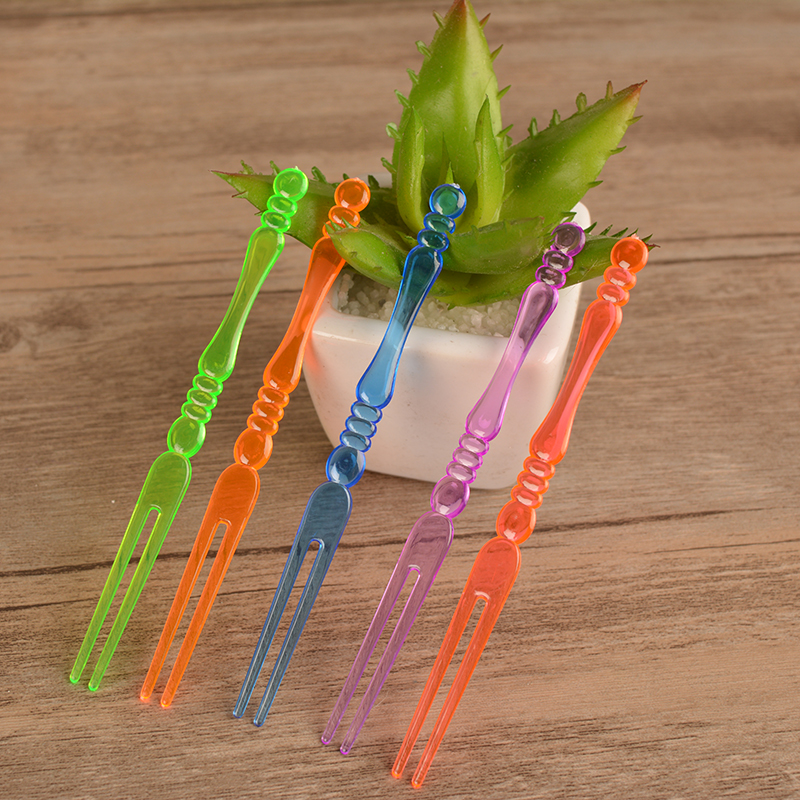 Disposable fruit fork bamboo fork transparent fruit fork two-section fork cake fork sign fruit needle transparent bamboo fruit fork