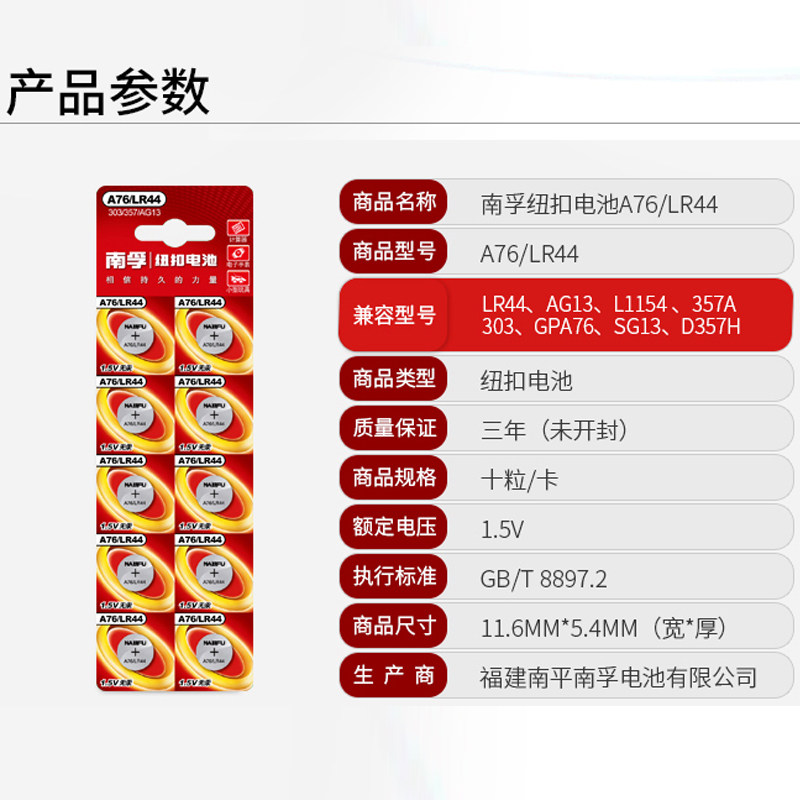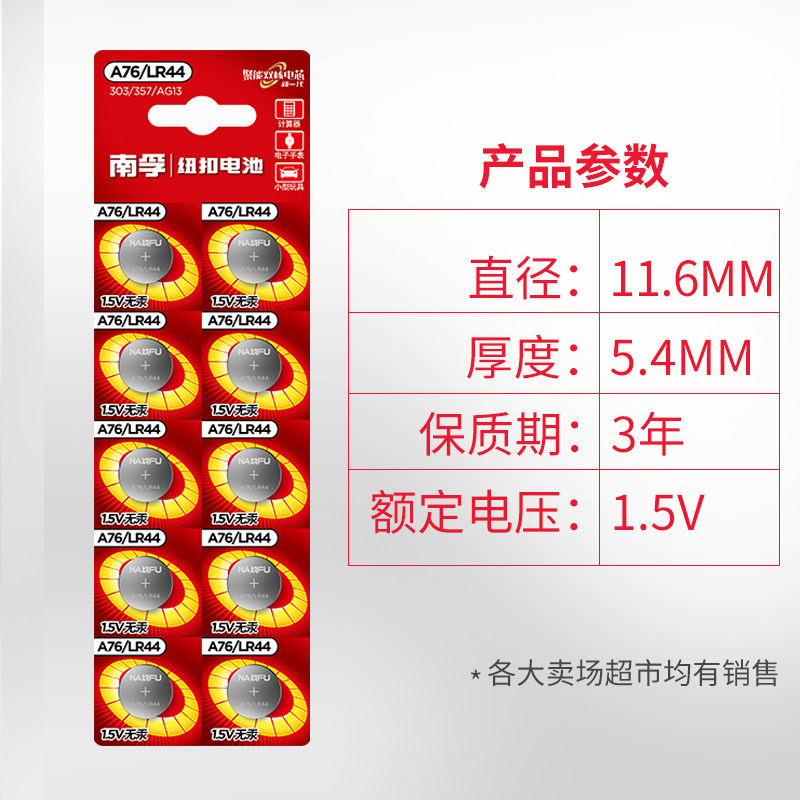Nanfu LR44 button alkaline battery AG13 L1154 A76 357a SR44 electronic watch 1 5v toy remote control vernier caliper button small battery Ten Pieces