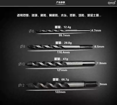 Lengthened woodworking Ceramic reaming drill Ceramic tile cement wall drill Glass drill Electric drill Triangle drill Drilling