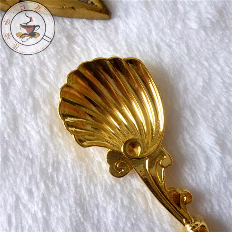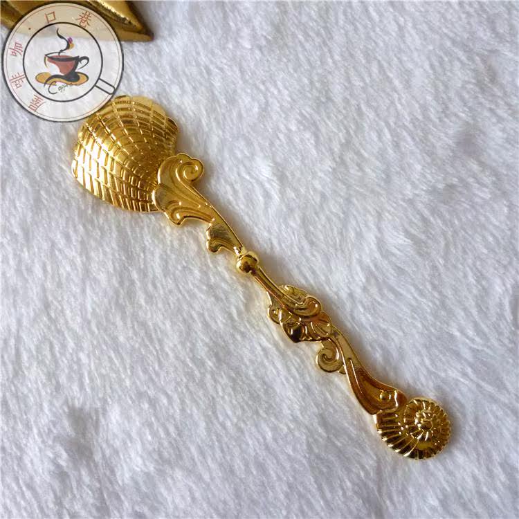 Foreign trade Original single gold coffee spoon Mediterranean gold plated spoon zinc alloy shell shaped scepter craftsmanship sweet spoon