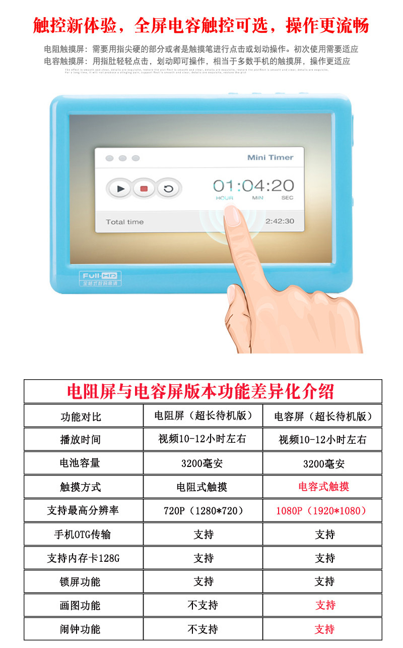 Unigroup V5 inch ultra-long standby HD touch screen MP5MP4 player e-book read MP3