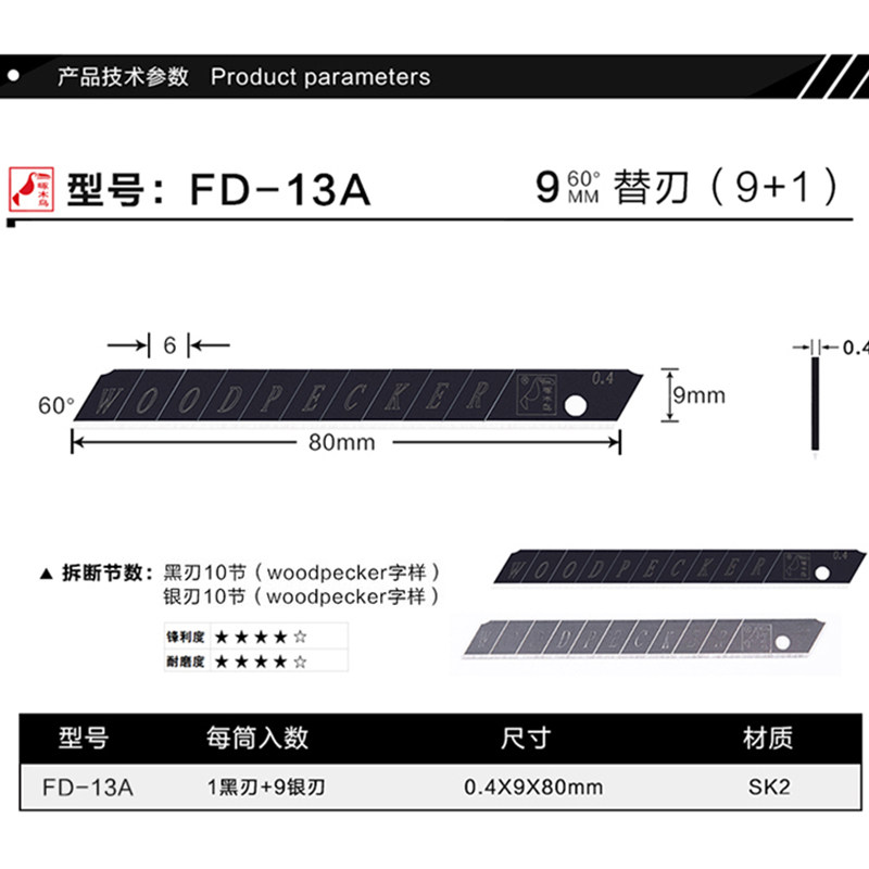 Woodpecker FD-13A utility blade small 9mm wallpaper wall cloth cutting paper film industrial utility blade
