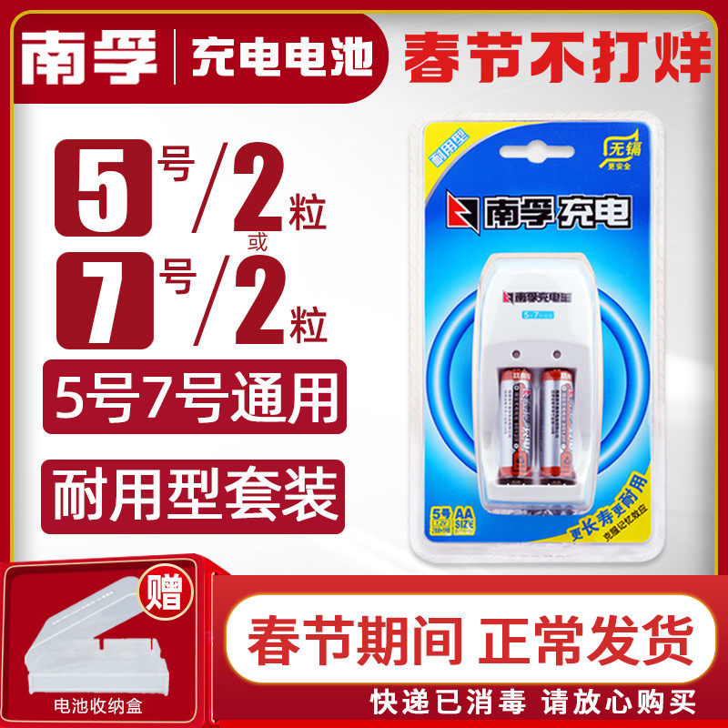 Nanfu No. 7 2 Rechargeable Battery Set Durable 1.2V900mAh NiMH 7 Charger No. 5 No. 2 Children's Toy Mouse Remote Control Cycle Wall Clock Alarm Clock Rechargeable