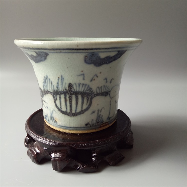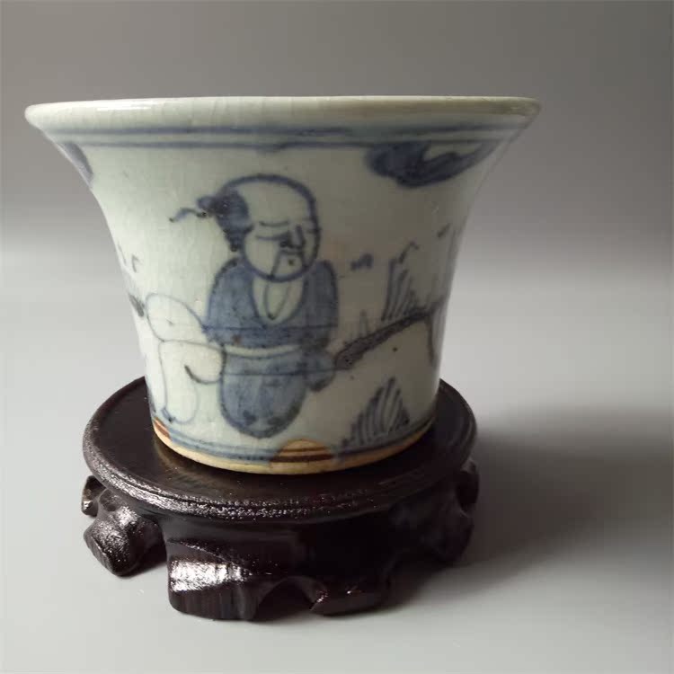 Ming blue and white character small flower pot old goods antique antique porcelain hand-painted boutique home collection