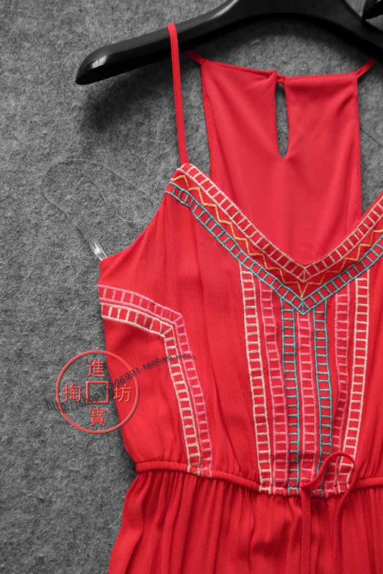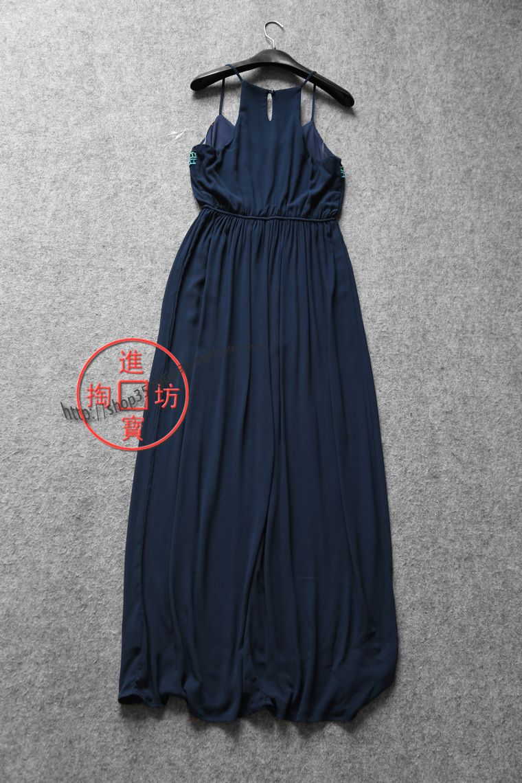 240C 0510 minimalist shoulder strap type full and generous coloured positioning cross-embroidered flutter and ground long dress
