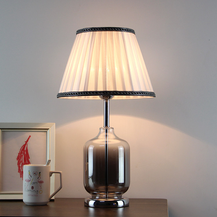 Modern minimalist European Crystal bedroom silver brushed desk lamp fashion personality creative stainless steel hotel bedside lamp