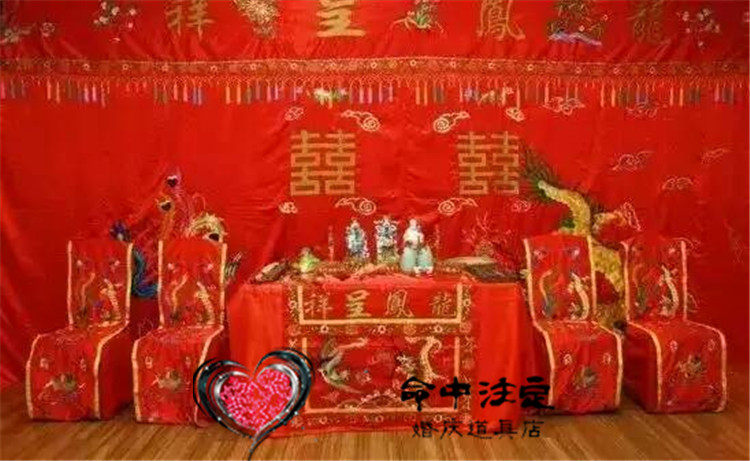Chinese wedding celebration props Longfeng table surrounding chair Beatle wedding gift table and chairs cover background drape table cloth Chinese style five or six pieces