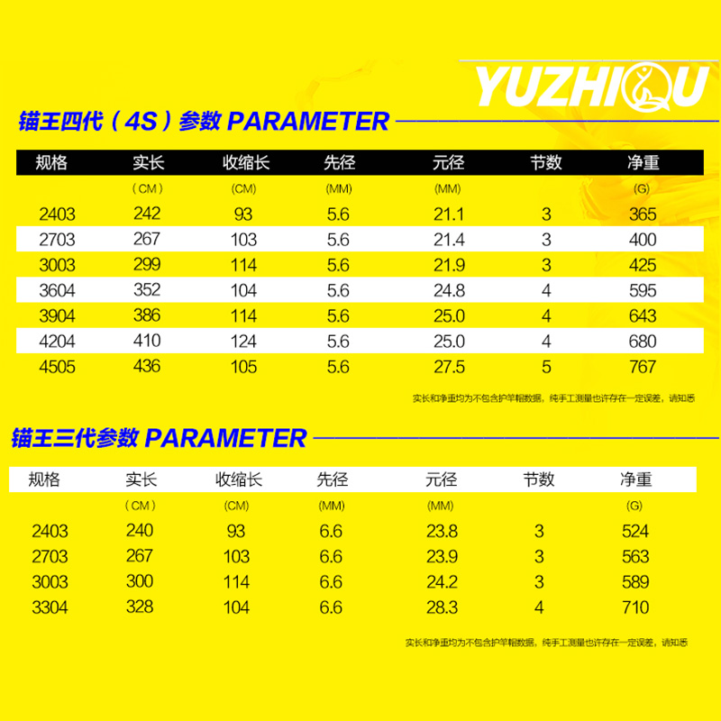 3 generations 2.4m single pole 3 generations 2.7m single pole 3 generations 3.0m single pole 3 generation 3.3m single rod 4 generations 2.4m single pole 4 generations 2.7m single pole 4 generation 3.0m single pole 4 generation 3.6m single pole 4 generation 4.9m single pole 4th generation 4.2m single pole 4th generation 4.5m single rod 3rd generation 2.4m + YT8000 metal wheel gift package 3rd generation 2.7m + YT8000 metal wheel gift package 3rd generation 3.0m + YT8000 metal wheel gift package 3rd generation 3.3m + YT8000 metal wheel gift package 4th Generation 2.4m + YT8000 Metal Wheel Gift Pack 4th Generation 2.7m + YT8000 Metal Wheel Gift Pack 4th Generation 3.0m + YT8000 Metal Wheel Gift Pack 4th Generation 3.6m + YT8000 Metal Wheel Gift Pack 4th Generation 3.9m + YT8000 Metal Wheel Gift Pack 4th Generation 4.2m + YT8000 Metal Wheel Gift Pack 4th Generation 4.5m + YT8000 Metal Wheel Gift Pack