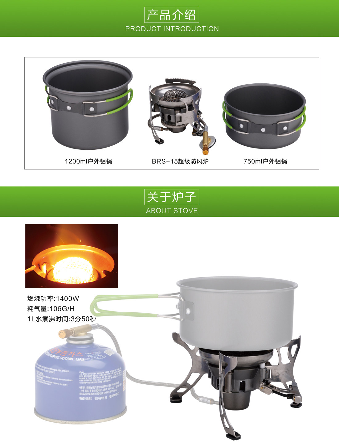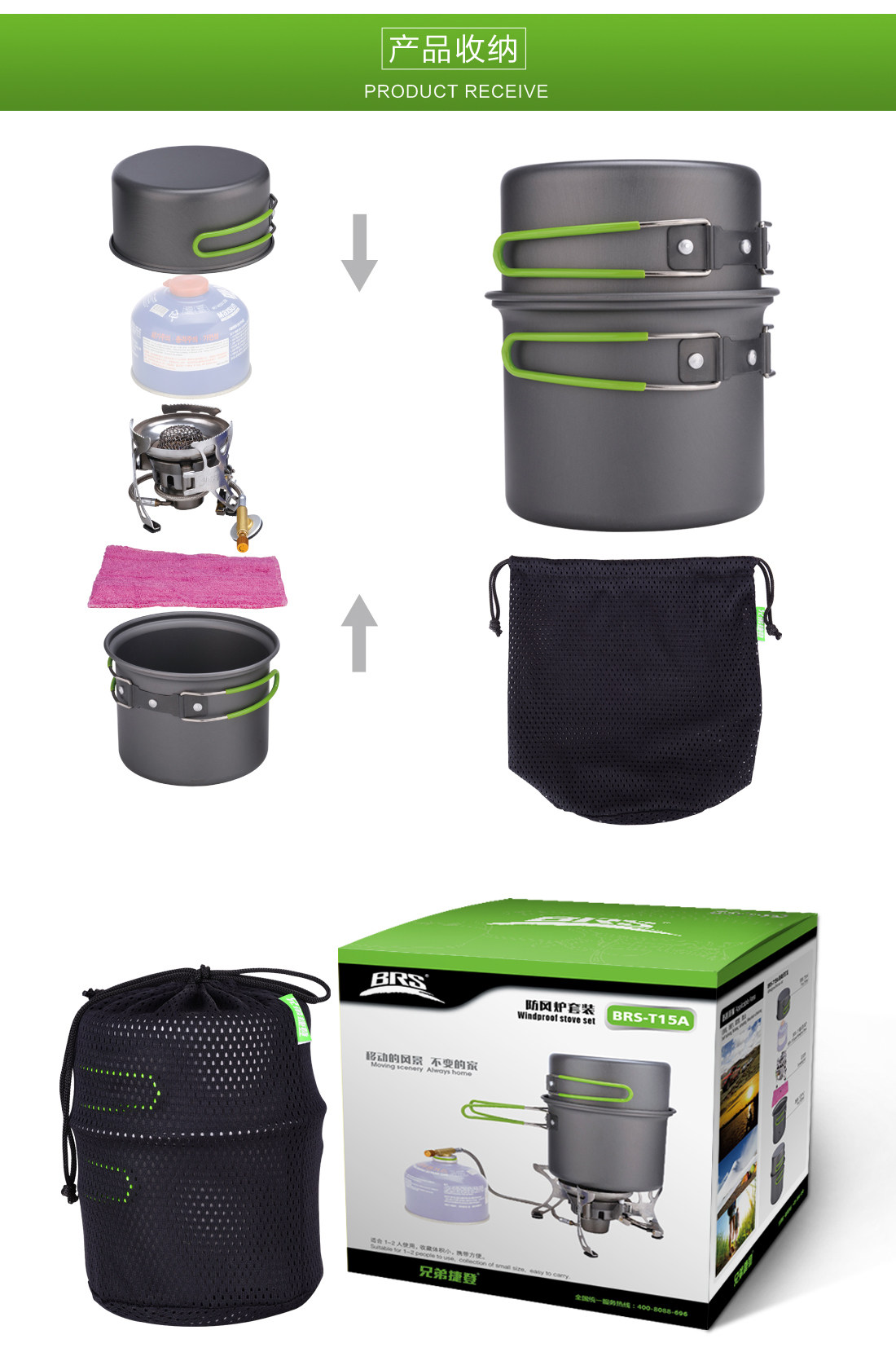 Brother BRS-T15A outdoor portable air proof stove camping stove cookware set pot equipment new spike