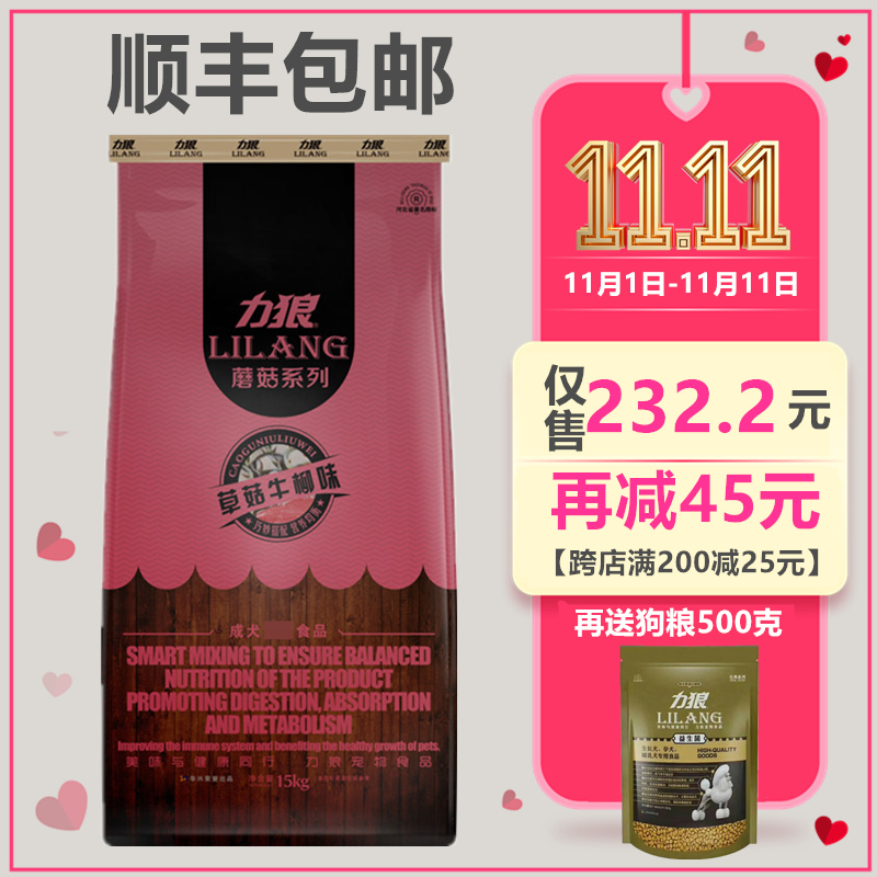 Lilang adult dog food dog food 15 kg KG straw mushroom beef tenderloin Tibetan mastiff German Shepherd Lowe Summer Golden Retriever Chow Chow