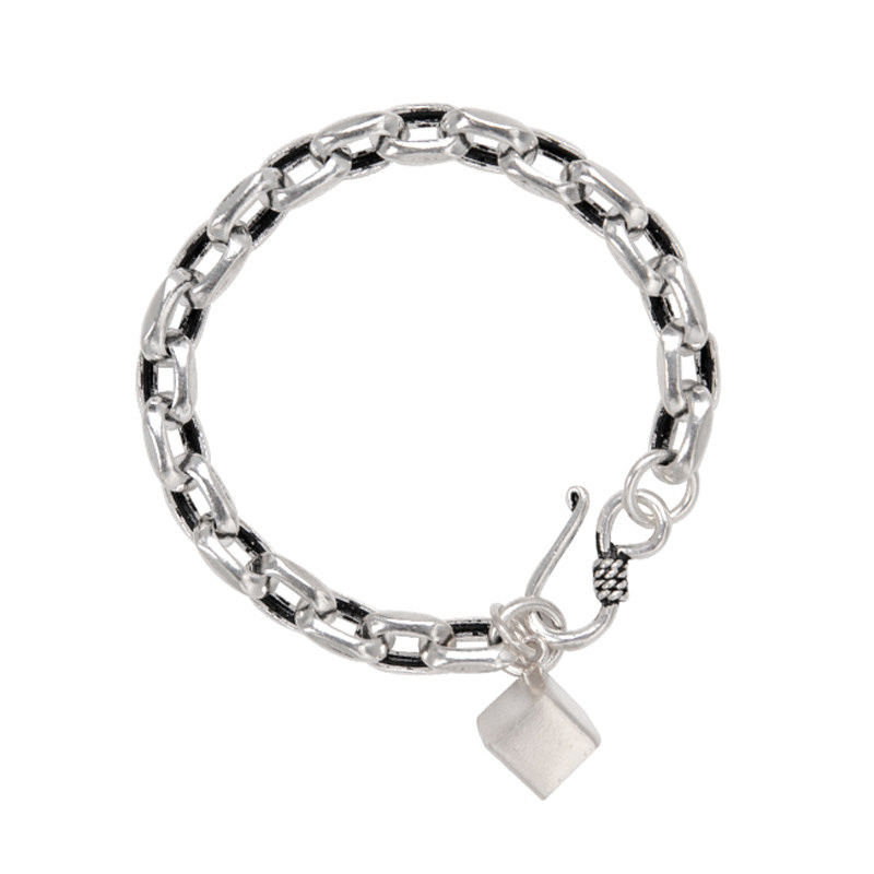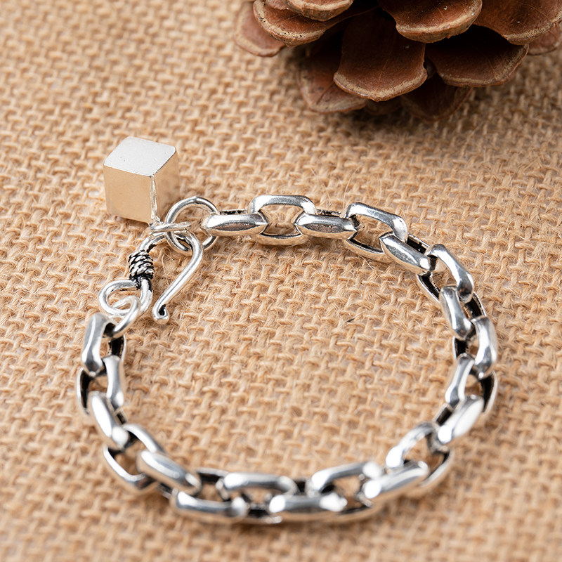 925 pure silver handmade Tetris women's casual coarse, Japan-ROK neutral couple handmade Fugu Thai silver men's hand ring