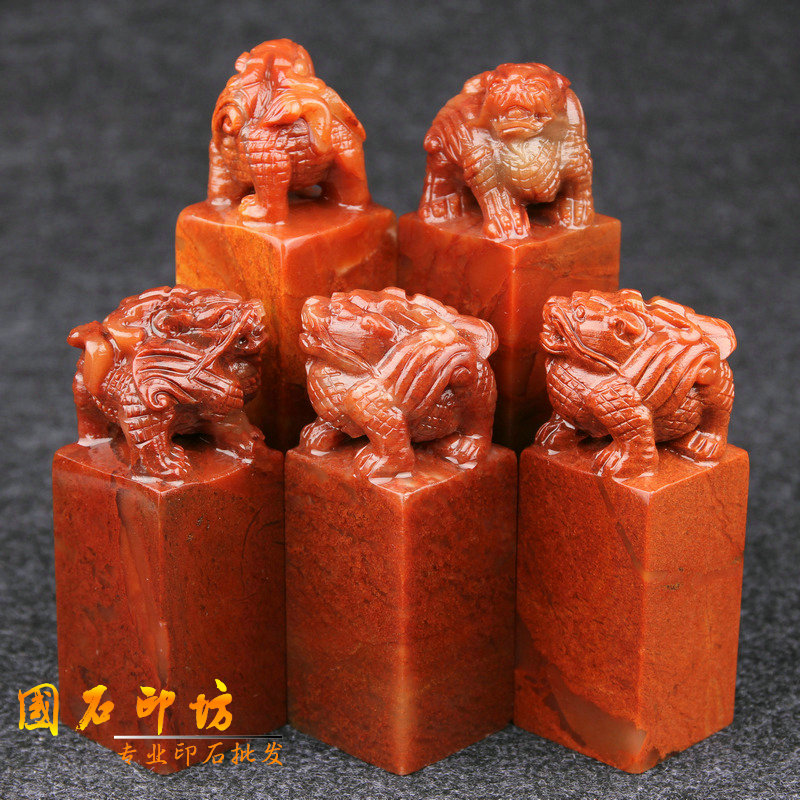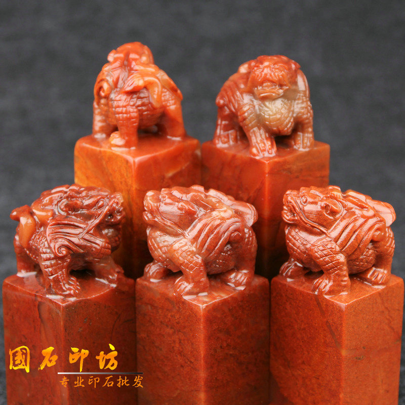 3x3x8cm Shoushan Stone Ancient Beast Seal Gold Stone Seal Carving Seal Stone Custom Name Calligraphy and Painting Seal Original Stone