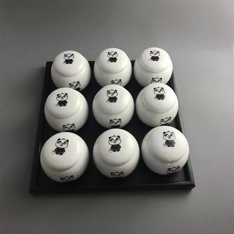 9 pandas containing bamboo tray 9 pandas containing pallets containing trays of 9 large panda cups containing trays of 4 large panda cups containing trays of 9 large panda cups 24 cups of small red cups containing tray containing tray 24 cups of bamboo joint tray 9