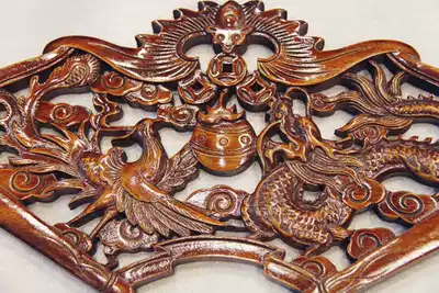 Dongyang wood carving pendant fan-shaped camphor wood home small crafts defuse Feng Shui town house evil fish blessing 21*41