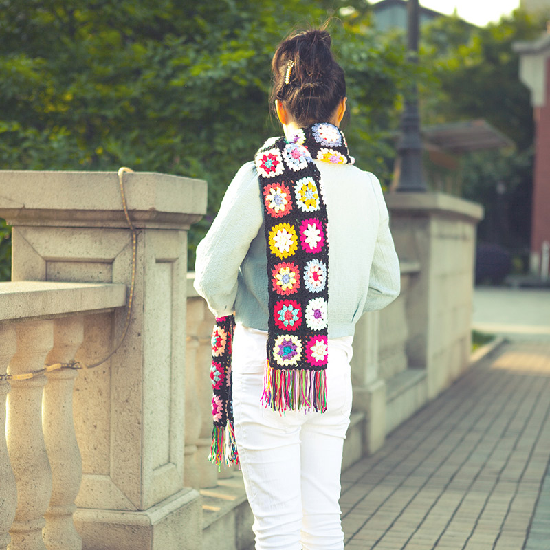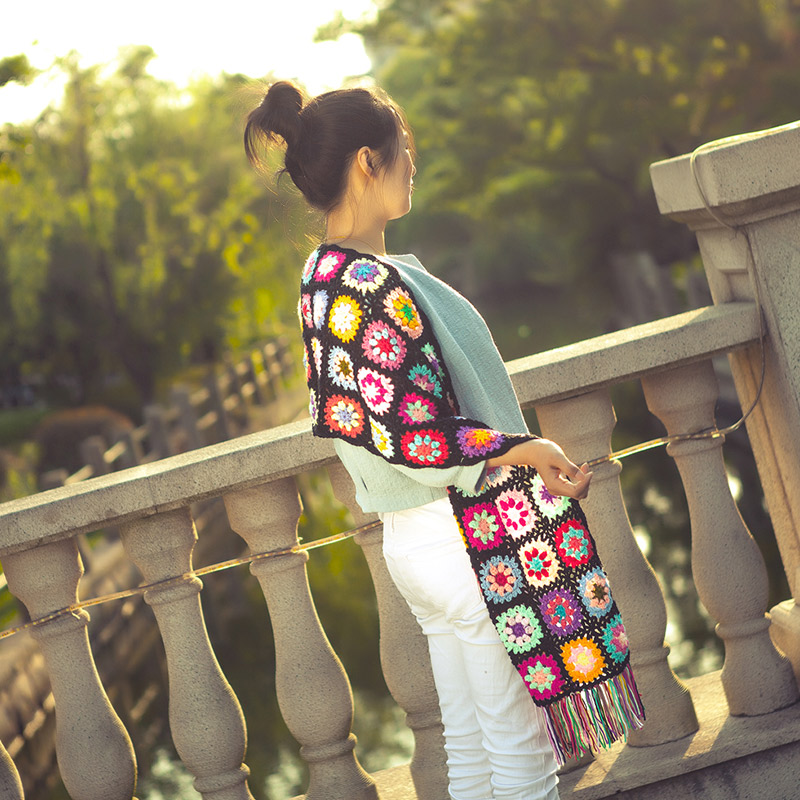 Scarf Handmade crochet production Retro Sen female Sen Japanese literary fan wool flower scarf Shawl scarf