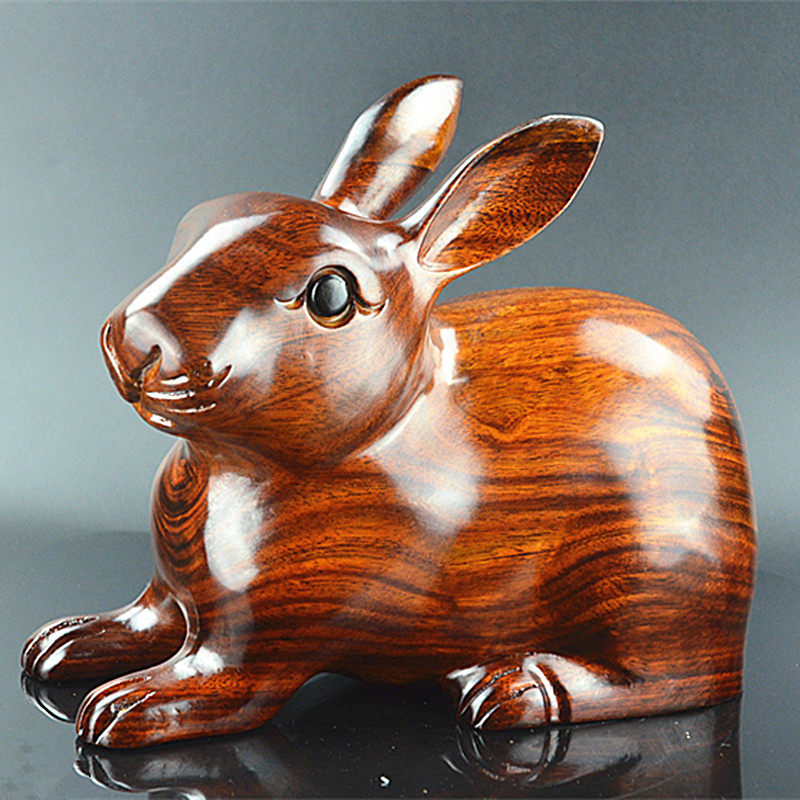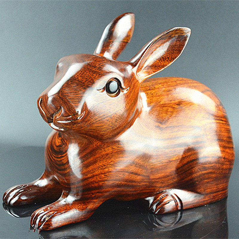 Mahogany wood carving lucky wood rabbit zodiac solid wood rabbit ornament jade rabbit red rabbit
