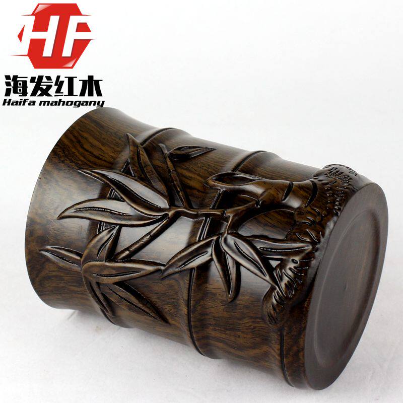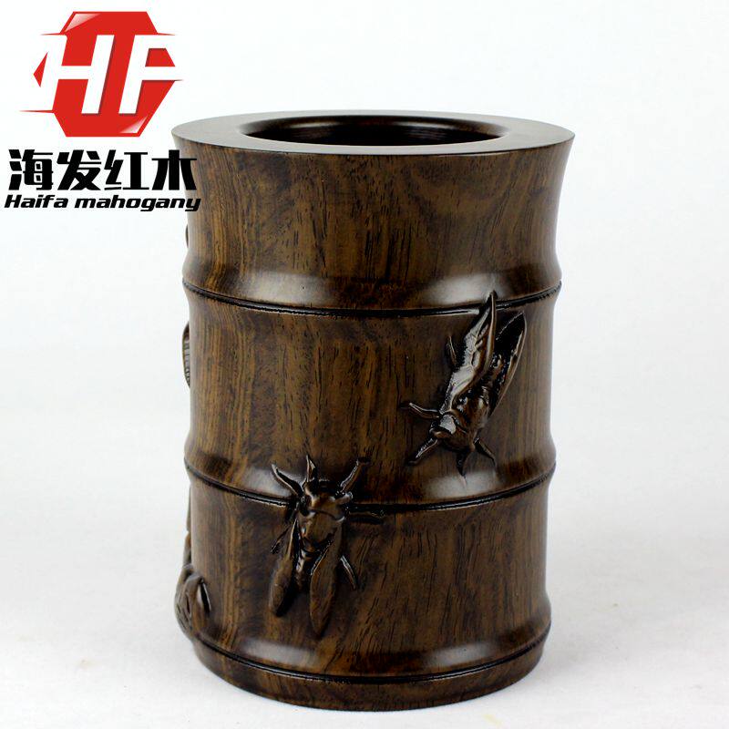 Red wood black sandalwood solid wood pen holder wood engraving imitation ancient know enough to know the pen holder creative office gift pendulum piece