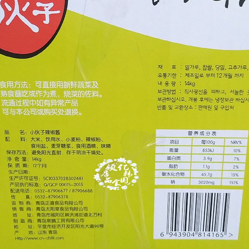 Young man chili sauce 14kg Korean bibimbap sauce sweet and spicy sauce Korean spicy fried rice cake sauce barbecue sauce