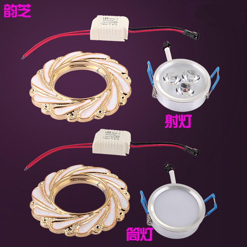 Led European-style spotlight living room recessed hole lamp ceiling light background wall bullseye lamp cylinder light lamp with small spotlight