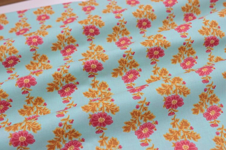 Green leaf large flower 1/8 yard blue bottom with flowers 1/8 yards blue 1/8 yards green flowers 1/8 code cyan 1/8 yards